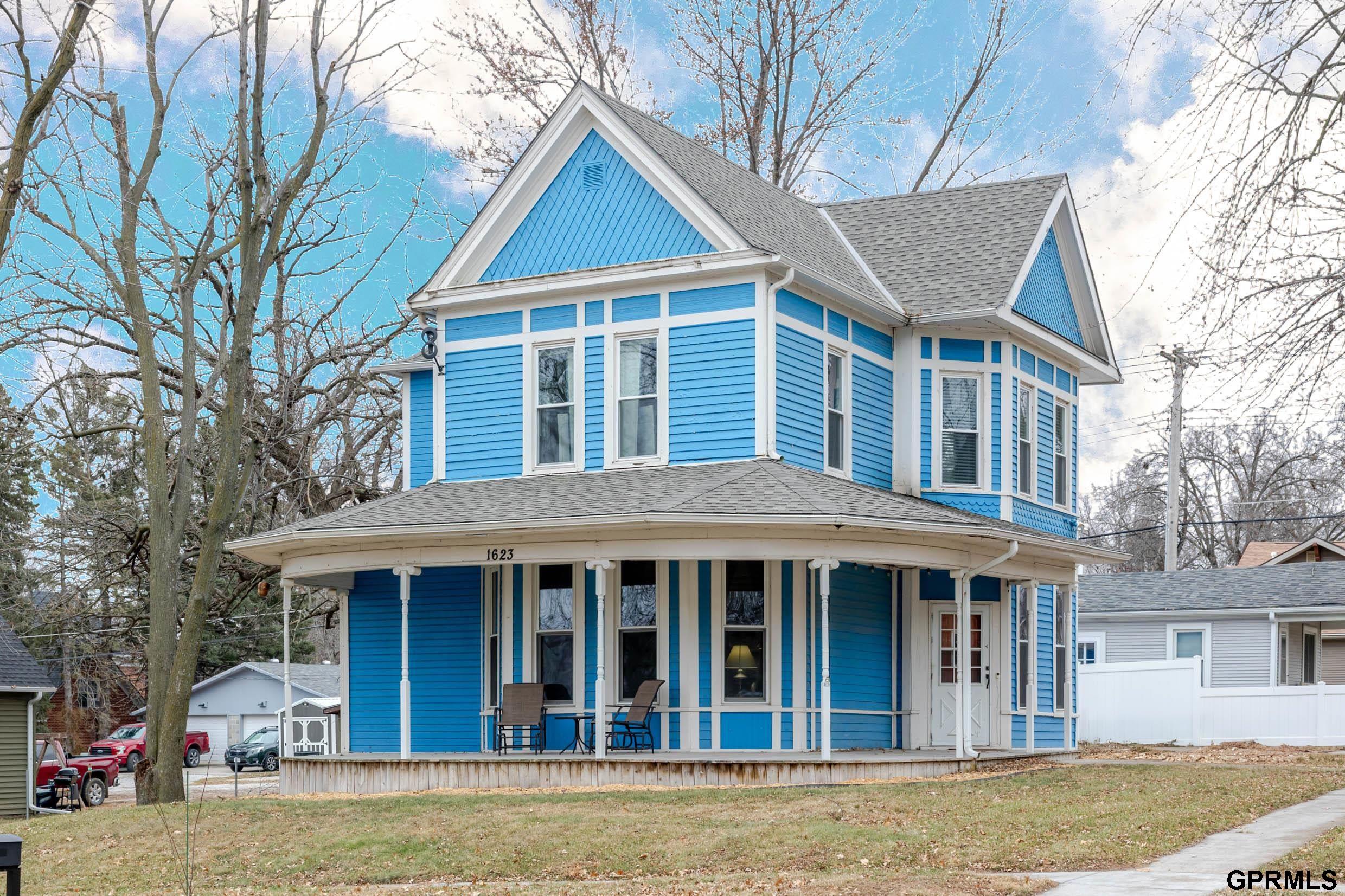 Welcome to this charming 4-bedroom, 2-bathroom home located in the heart of vibrant Nebraska City. Situated on a corner lot with mature landscaping, the property features a wrap-around front porch perfect for enjoying the neighborhood. The home offers off-street parking and an oversized one-car garage built in 2022 with 9-foot ceilings. The main floor has plenty of storage and offers a second full bathroom located near an office area equipped with a Murphy bed. A comfortable living room, formal dining area, laundry room, and an efficient kitchen. The second floor houses four bedrooms and one full bathroom. Newer Central HVAC system and water heater. The basement provides both interior and exterior access with potential for future improvements. For peace of mind, the home is equipped with WiFi exterior security cameras as well as smoke, carbon monoxide, and moisture detectors. All measurements more or less.