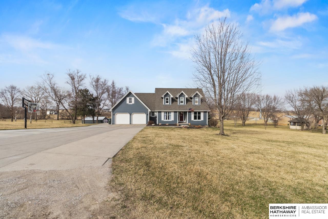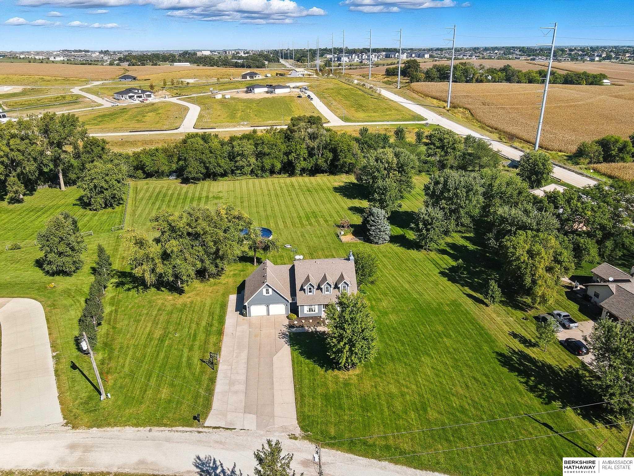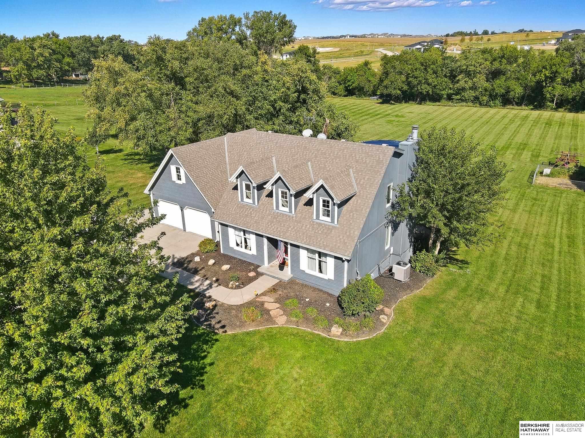 RARE GRETNA ACREAGE! Nestled on 3+ scenic acres, this beautifully updated two-story offers peaceful country living just minutes from Hwy 370, I-80, shopping, dining, and schools. The recently remodeled main floor features a stunning designer kitchen, inviting family room, elegant dining space and office. New carpet adds a fresh feel to the home. The spacious primary suite includes two walk-in closets and a spa-inspired bath with a whirlpool tub and newly updated shower. The walkout lower level provides incredible versatility with a large rec space, cozy fireplace, theatre and flex room. Step outside to enjoy the beauty of the property from the composite deck overlooking mature trees and the creek, plus refreshed landscaping, pool and a 24 x 54 insulated barn. Goats and chickens are welcome, making this the perfect setup for acreage living. Properties like this rarely become available in the desirable Gretna school district! Your opportunity for acreage lifestyle starts here.