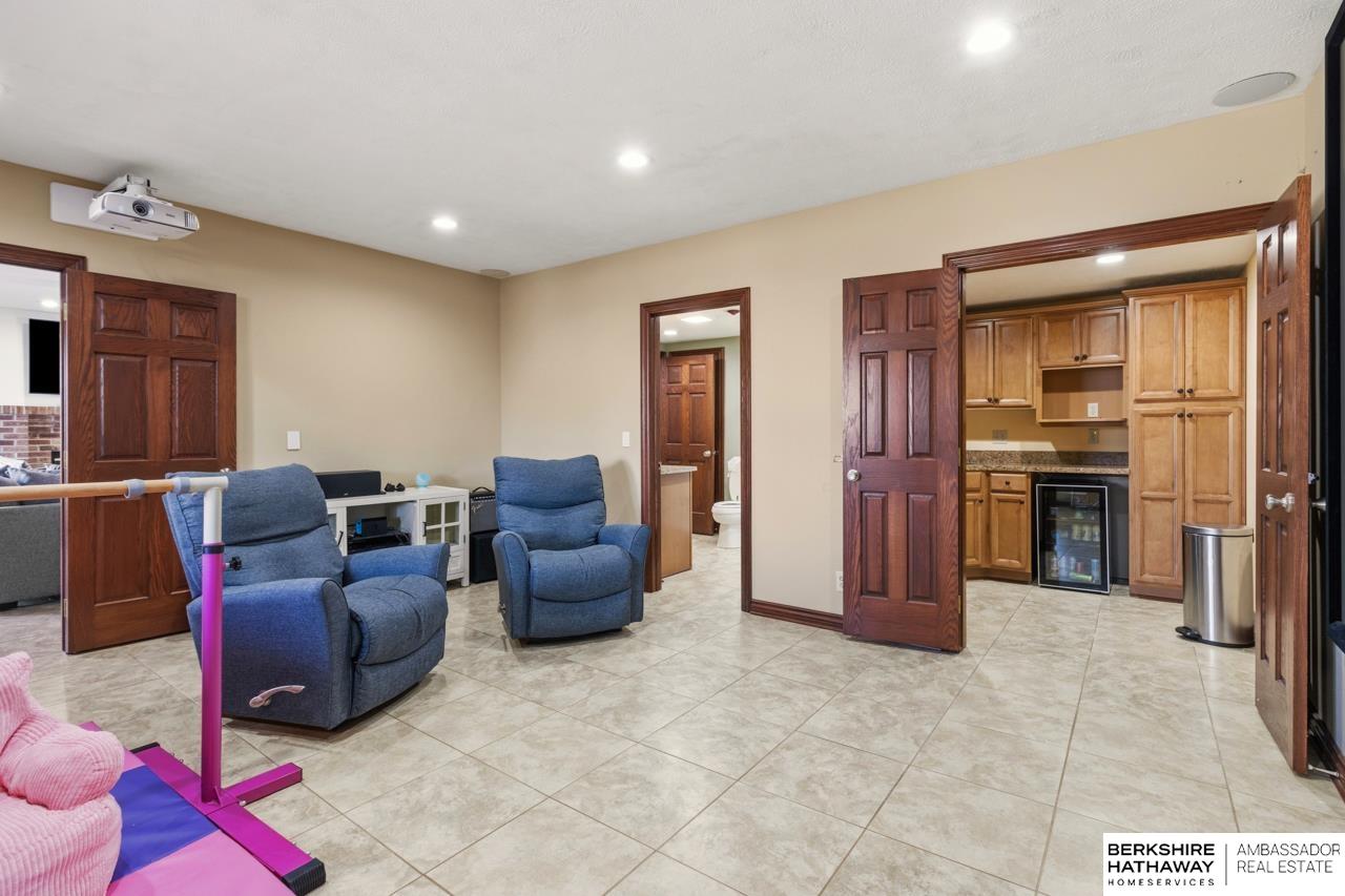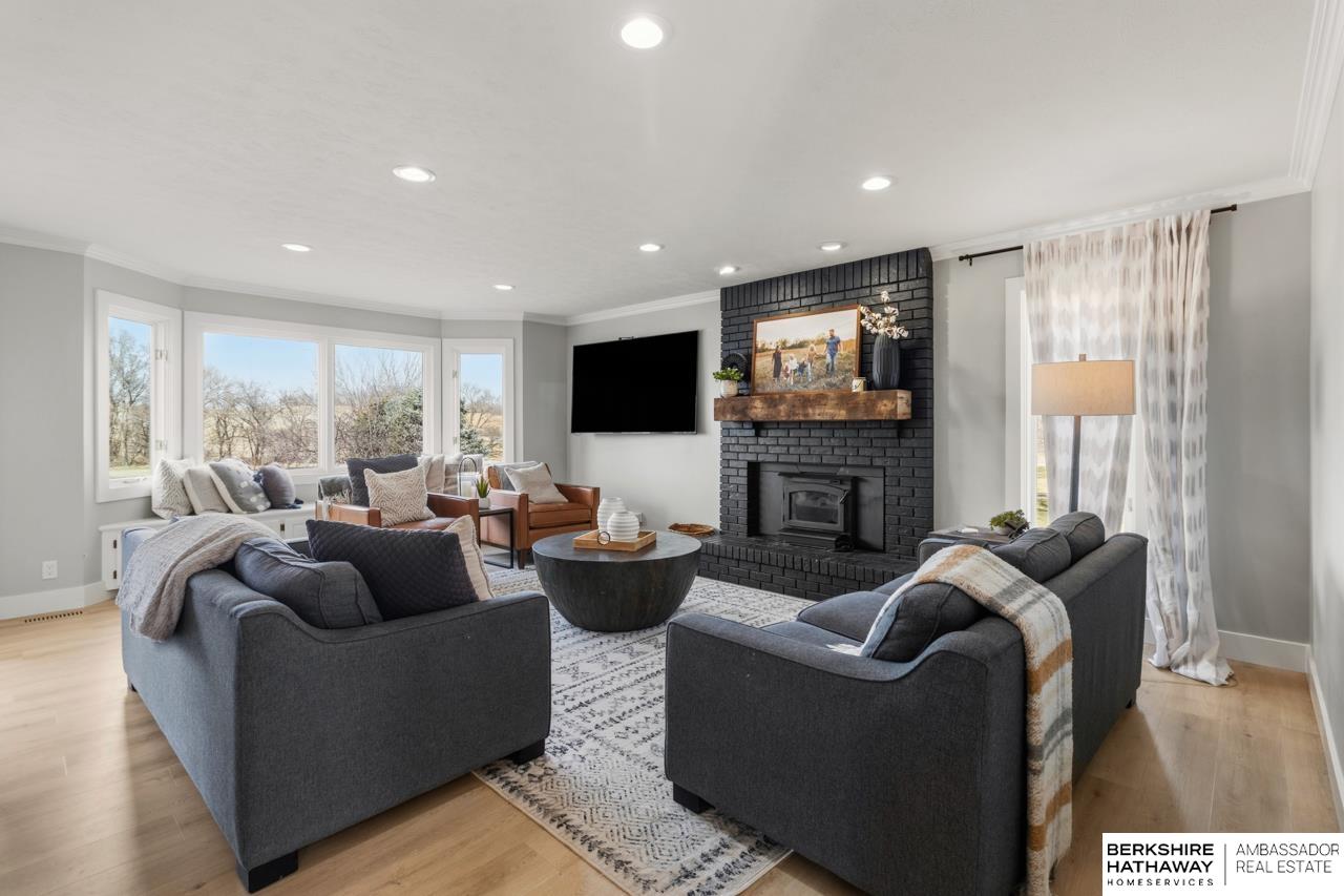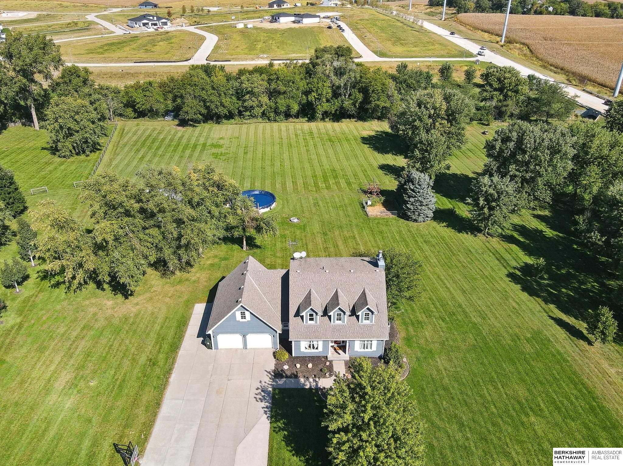 RARE GRETNA ACREAGE! Nestled on 3+ scenic acres, this beautifully updated two-story offers peaceful country living just minutes from Hwy 370, I-80, shopping, dining, and schools. The recently remodeled main floor features a stunning designer kitchen, inviting family room, elegant dining space and office. New carpet adds a fresh feel to the home. The spacious primary suite includes two walk-in closets and a spa-inspired bath with a whirlpool tub and newly updated shower. The walkout lower level provides incredible versatility with a large rec space, cozy fireplace, theatre and flex room. Step outside to enjoy the beauty of the property from the composite deck overlooking mature trees and the creek, plus refreshed landscaping, pool and a 24 x 54 insulated barn. Goats and chickens are welcome, making this the perfect setup for acreage living. Properties like this rarely become available in the desirable Gretna school district! Your opportunity for acreage lifestyle starts here.