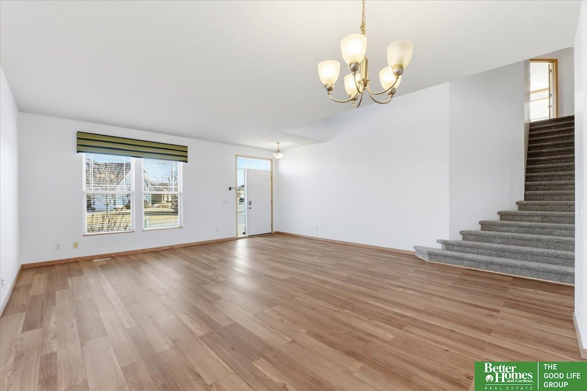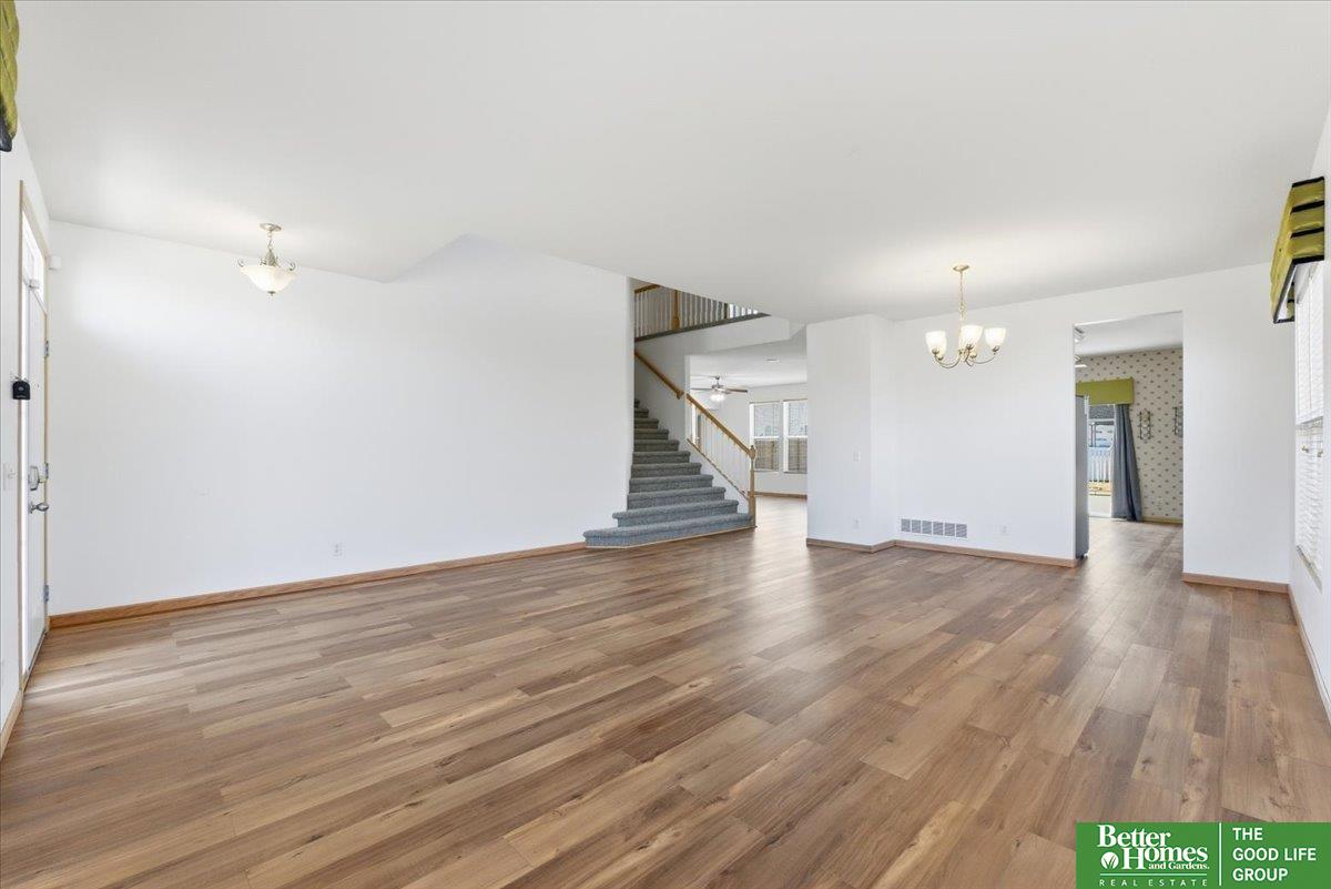Contract Pending - on the market for back up offers. Papillion 2-story offering over 4,000 fin square feet and some of the most space for the money on the market! New roof, siding, deck, and flooring! Located in Papillion's popular Grandview subdivision and just steps from Walnut Creek Rec Area, this home delivers both room to spread out and an unbeatable lifestyle. Soaring ceilings and large windows create a bright, open feel throughout. Brand new flooring runs through the home, giving it a fresh, updated look. The main floor flows easily between living, dining and kitchen spaces, plus a dedicated office which once was a salon (with the plumbing under the floor in case you wanted to convert back). Upstairs features four bedrooms including a spacious primary suite with sitting area and walk-in closet. Finished lower level adds rec space and yet another flex room! Patriot Elementary. Papillion-La Vista South schools. Welcome home!