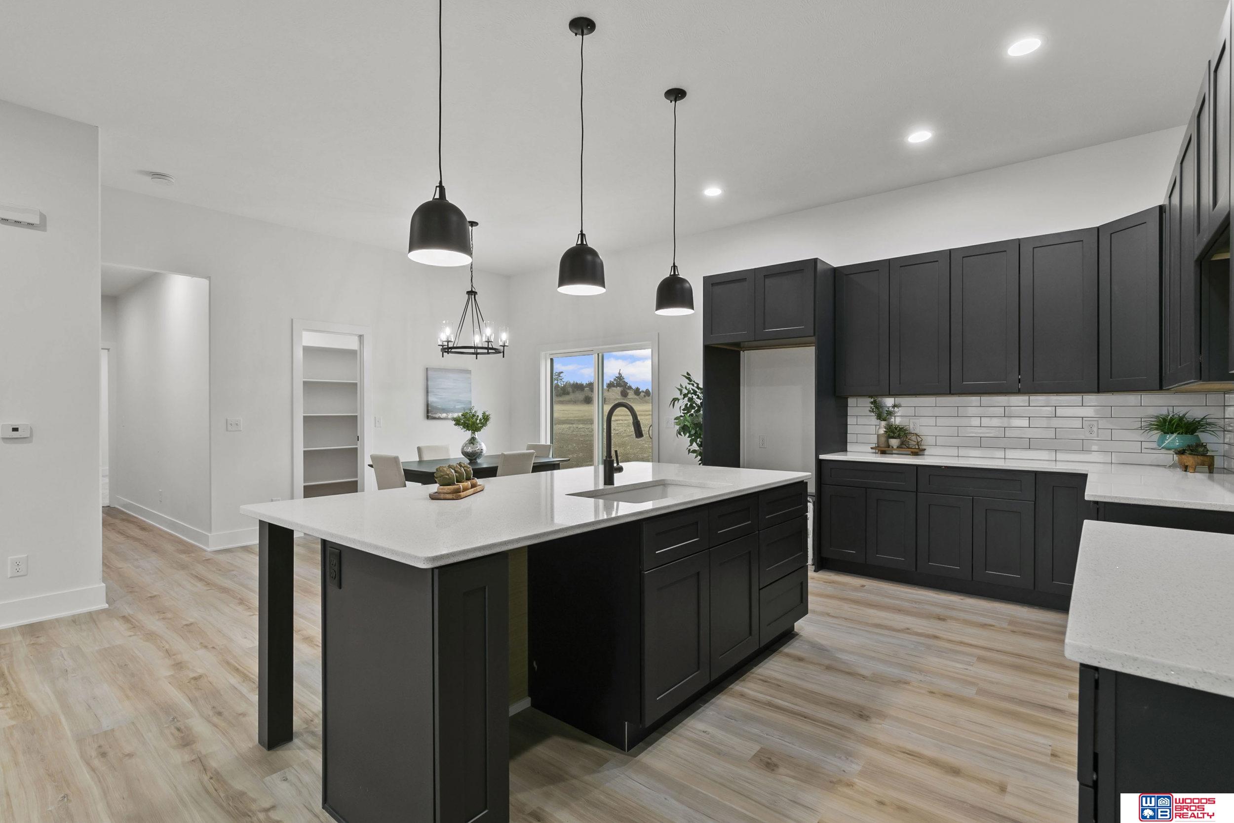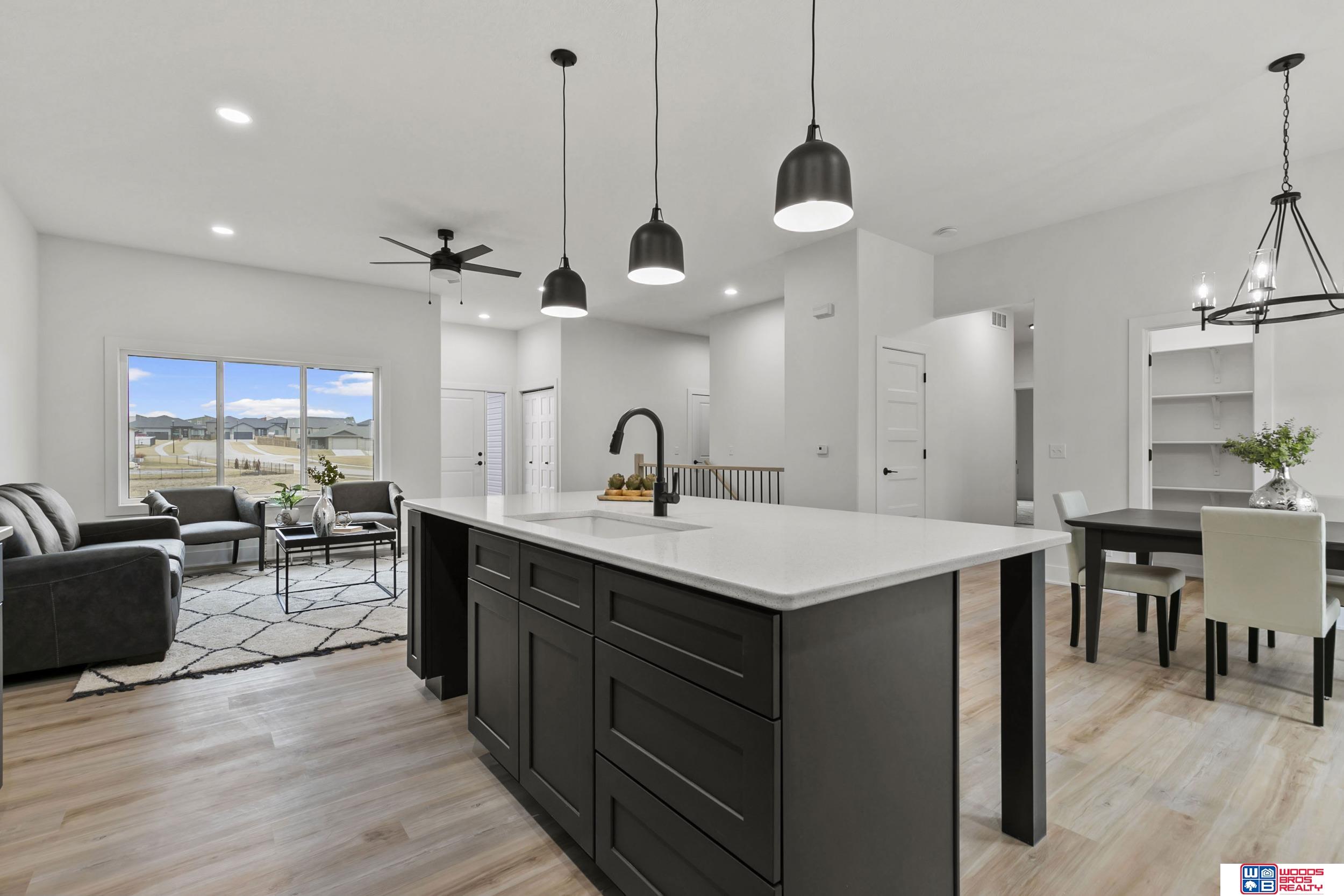 Elegant new 5 bedrooms, 3 bathrooms ranch by Geysun Style Homes provides spacious living and many upgrades. Open plan concept with large living room overlooking kitchen and dining area. The kitchen has ample countertop space with center island and breakfast bar, granite with tile backsplash and large pantry. LVT floors are throughout the kitchen and adjoining dining room for easy upkeep. The laundry room is conveniently located on the main level. The primary suite offers a walk-in closet, tiled walk-in shower and double sink vanity. The daylight finished basement has three legal bedrooms, a full bathroom and huge family room. 12 X 12 covered deck is great for outdoor entertainment. Oversized 4 stall garage is deep and has plenty of room to park and for storage/workspace. Full sod, UGS, garage opener & sump pump are included in the price. House is located in Waterford Estates subdivision.